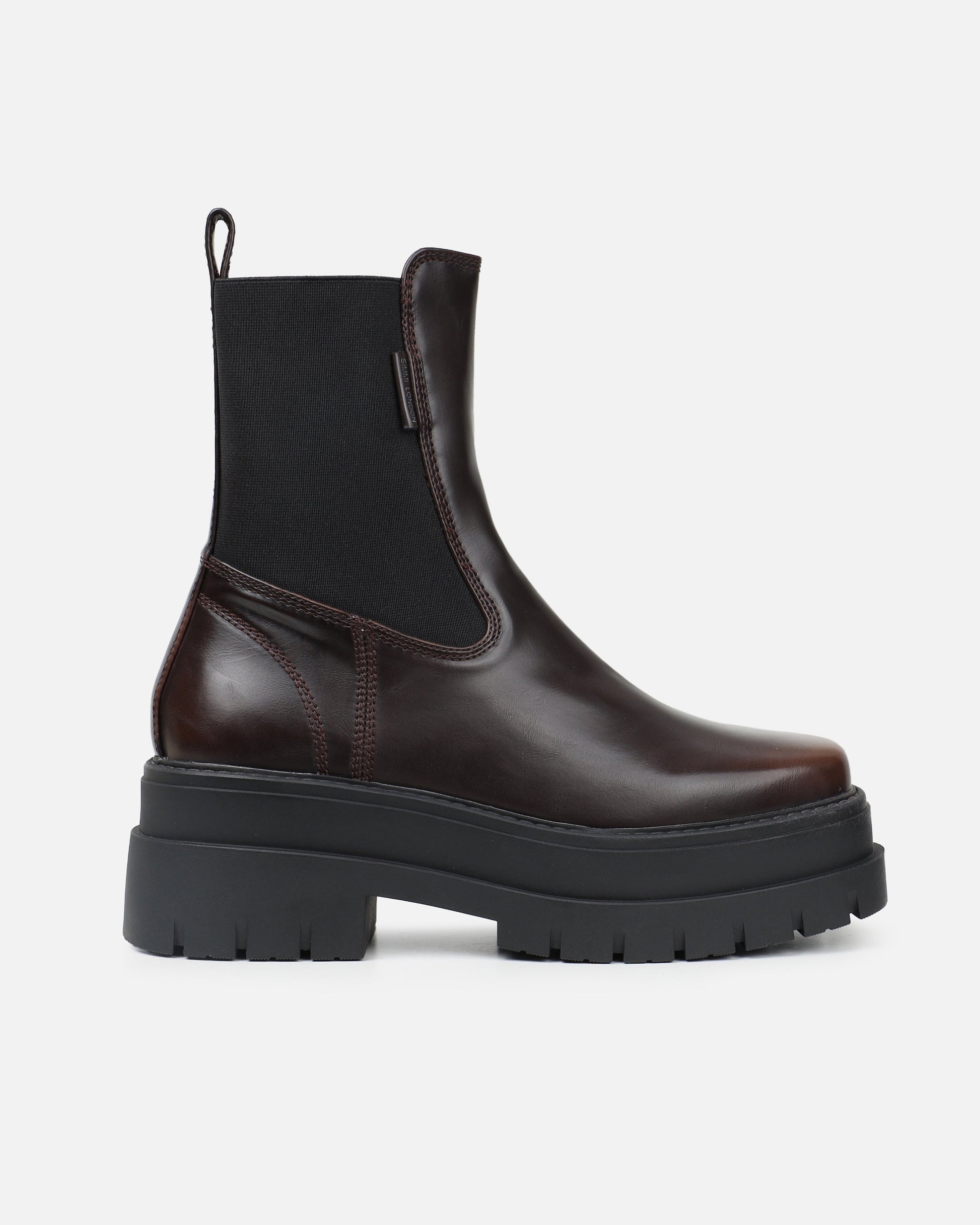 Arvin Brown Burnished Chelsea Chunky Ankle Boots