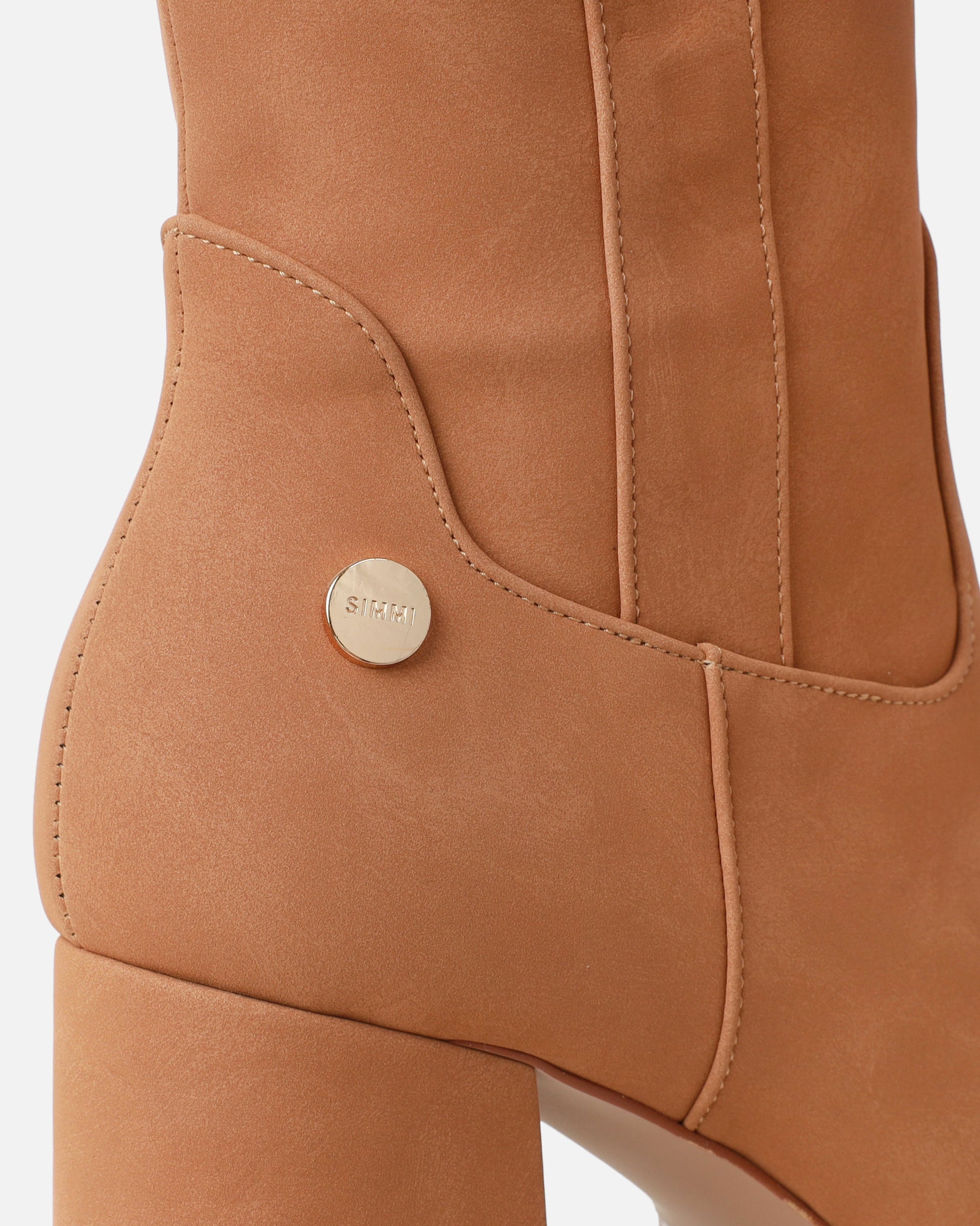 Caiden Tan Platform Knee Boots With Faux Fur Turnover