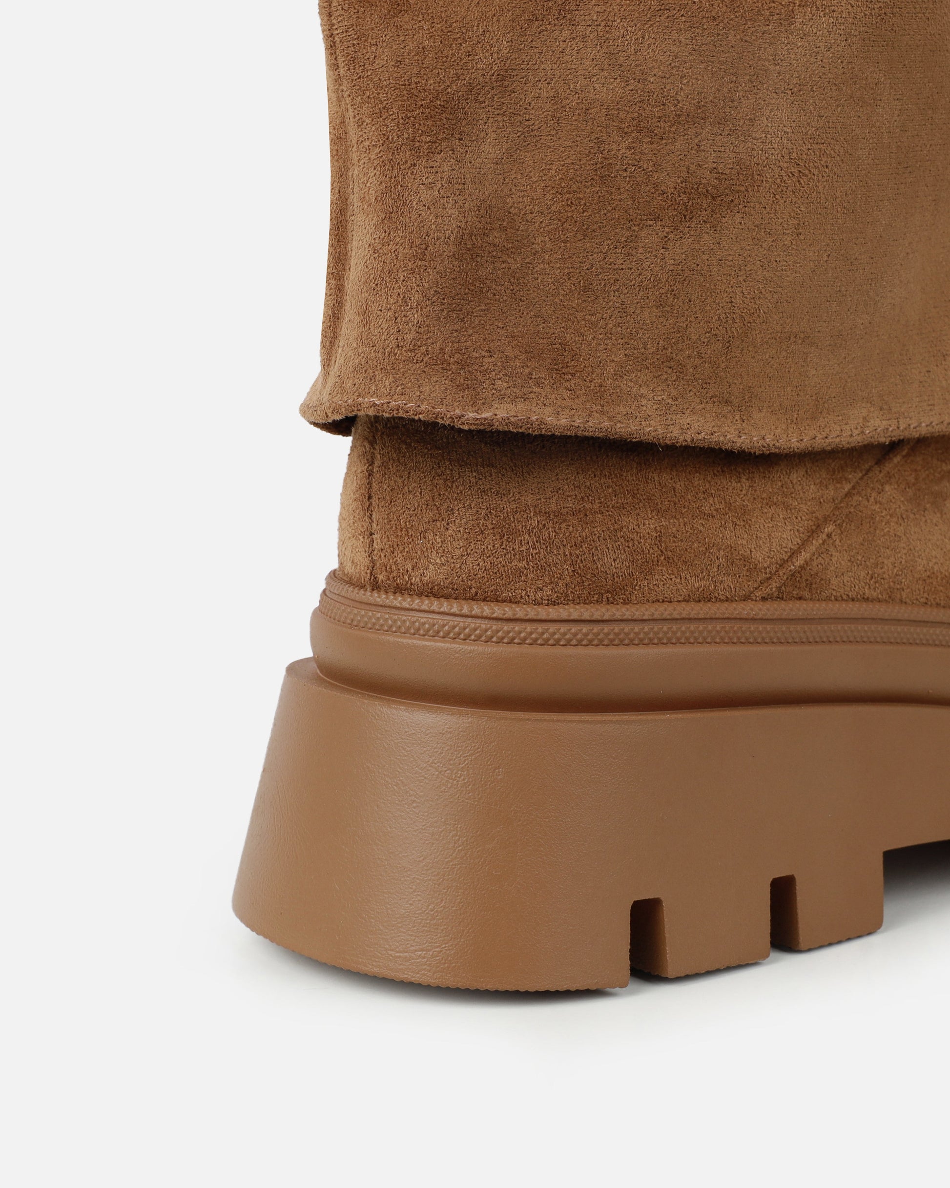 Fynn Tan Faux Suede Fold Over Chunky Boots