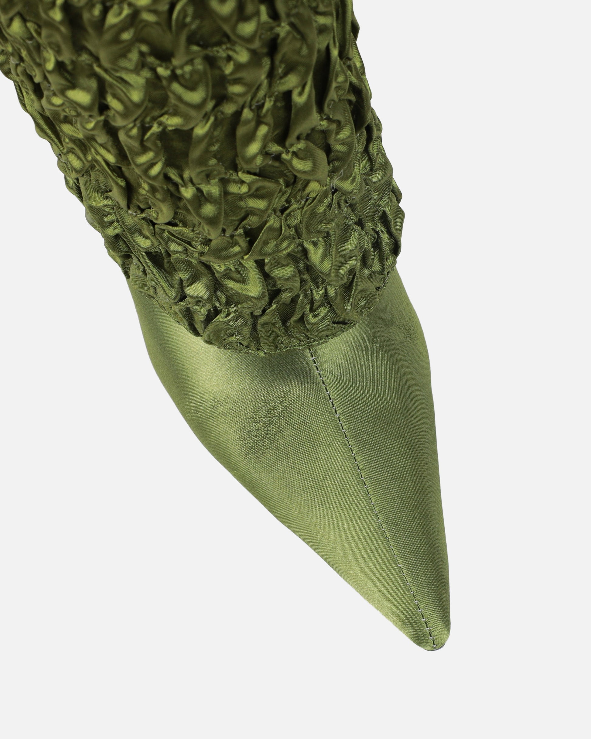 Harrie Olive Green Satin Ruched Stiletto Knee High Boots