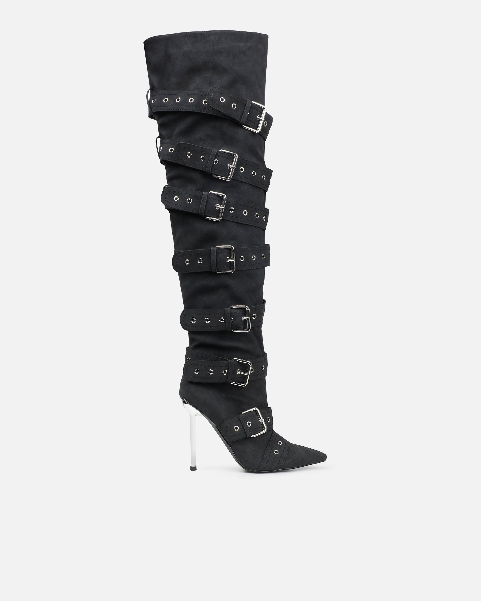 Maxton Black Nubuck Multi Buckle Thigh High Boots