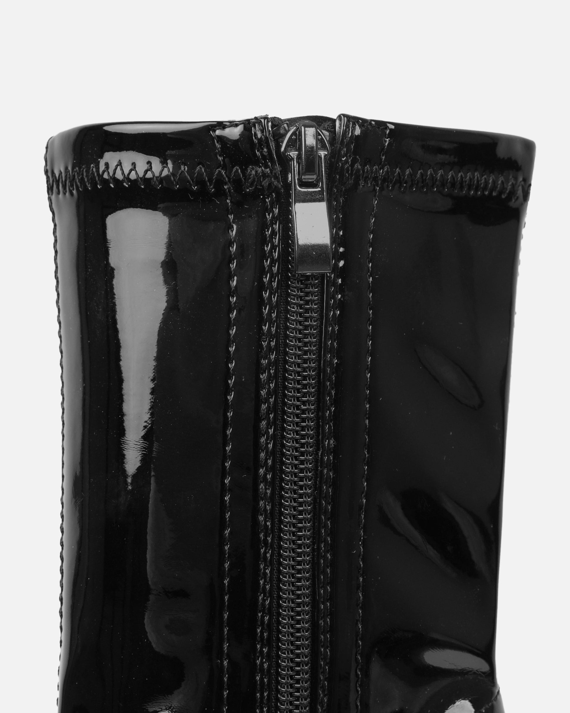 Prince Black Patent High Heeled Pointed Toe Sock Boots